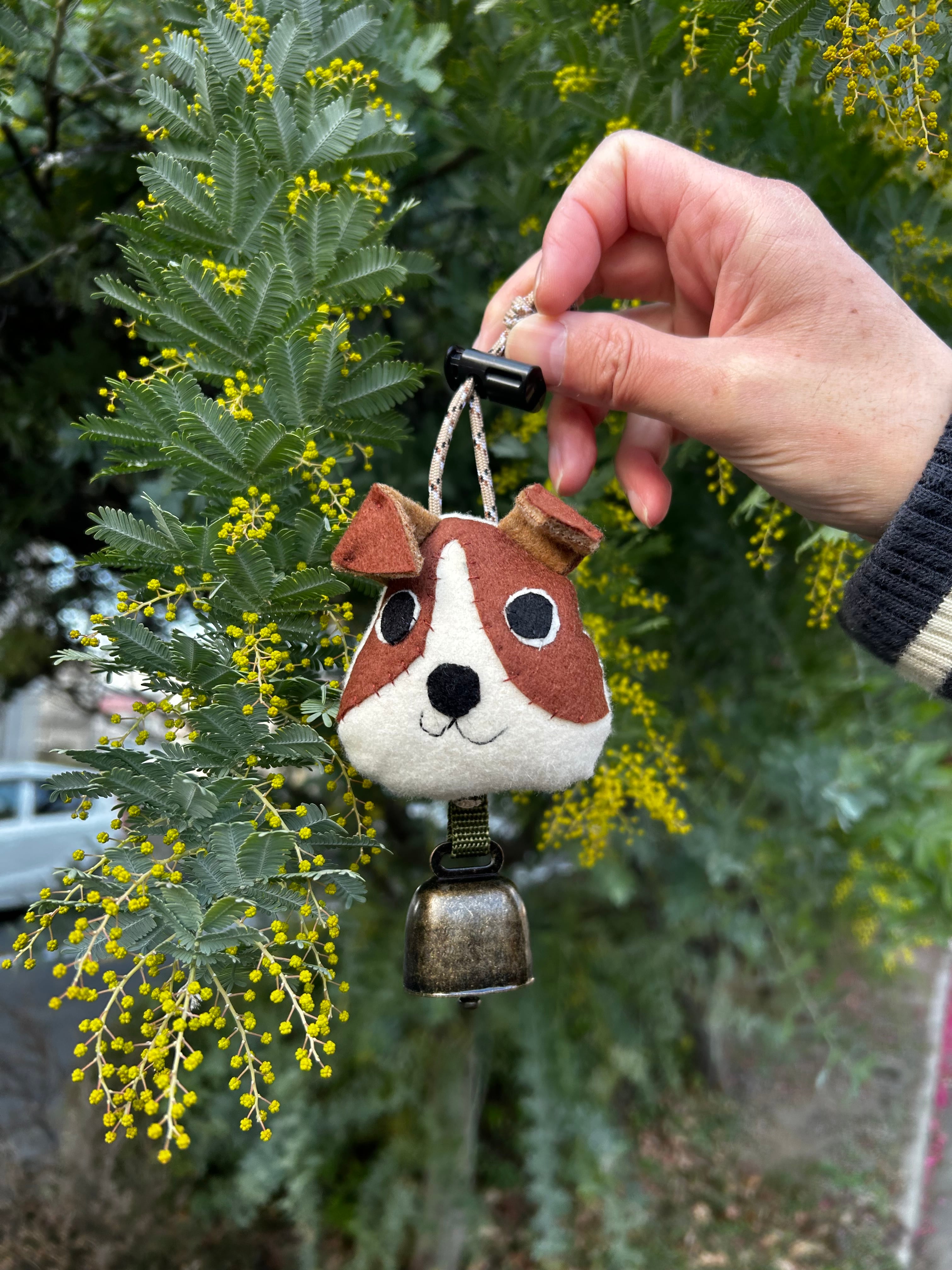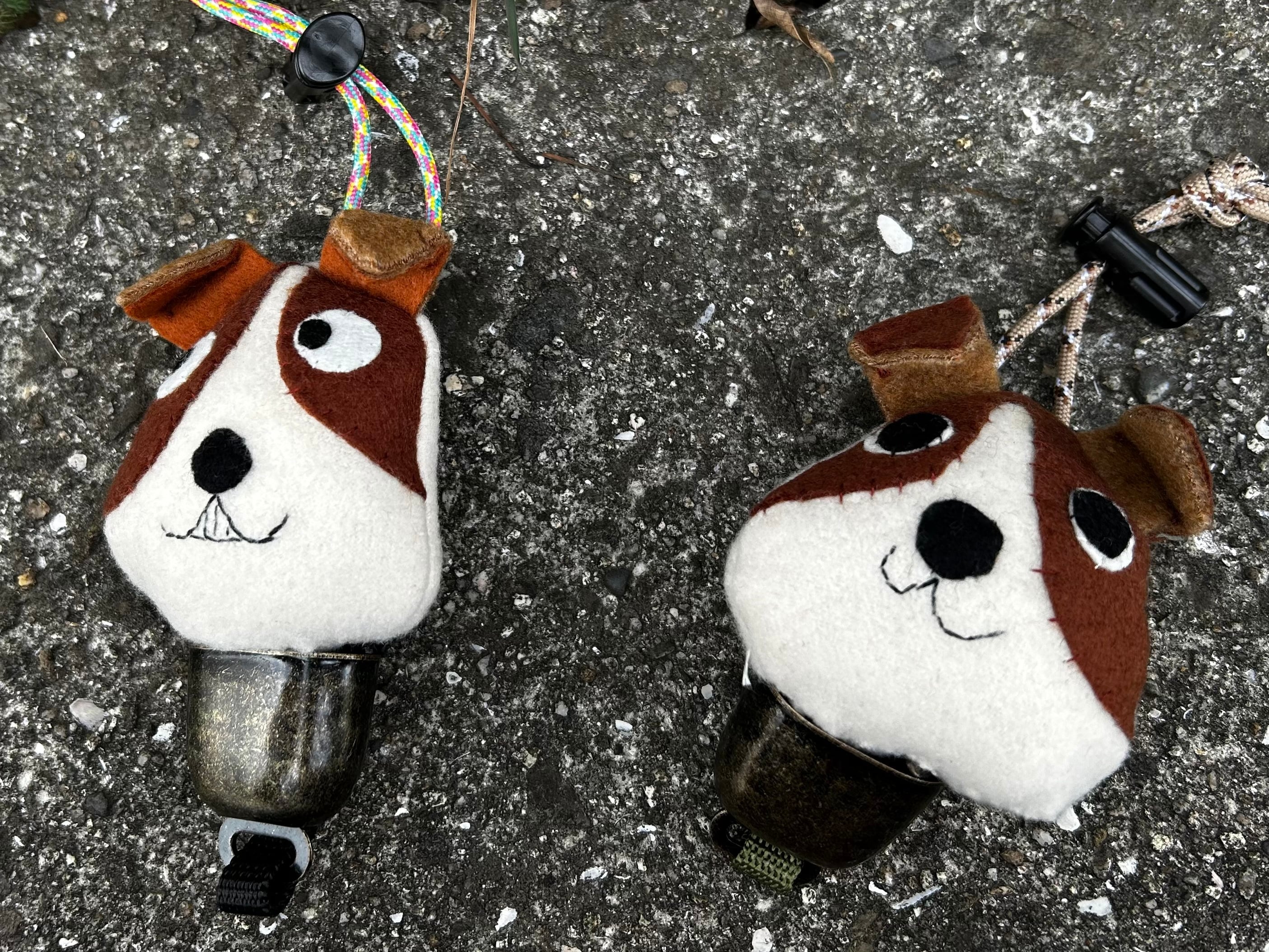 CACHALOTの看板犬ジャックラッセルテリアBECKYの熊よけ鈴を2種類作りました。