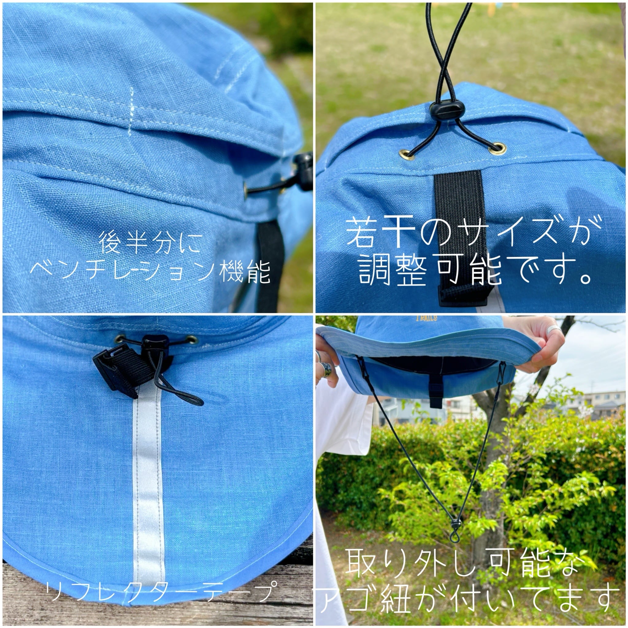 ☆風で飛ばされないように 取り外し可能なアゴ紐が付属します。
