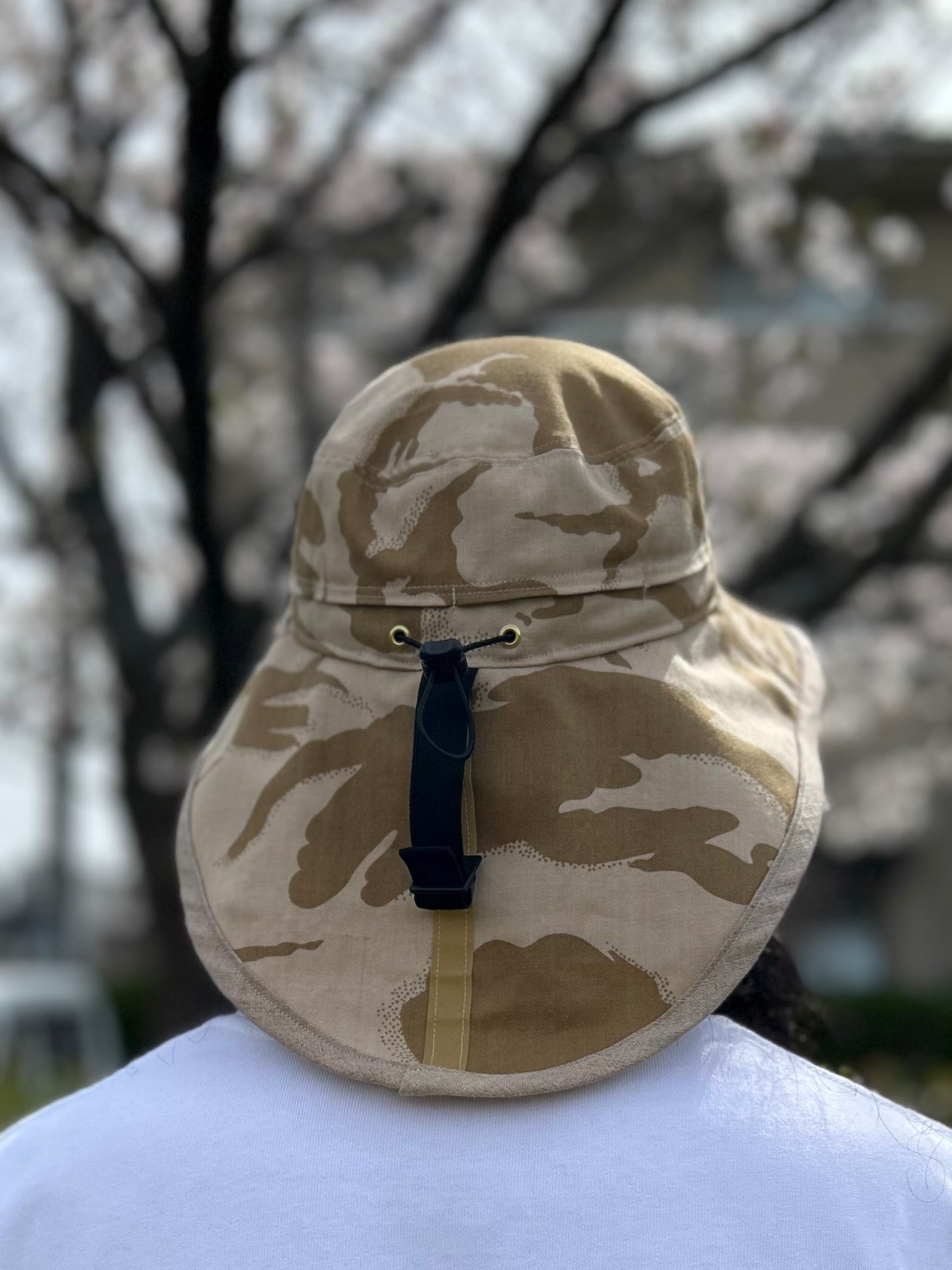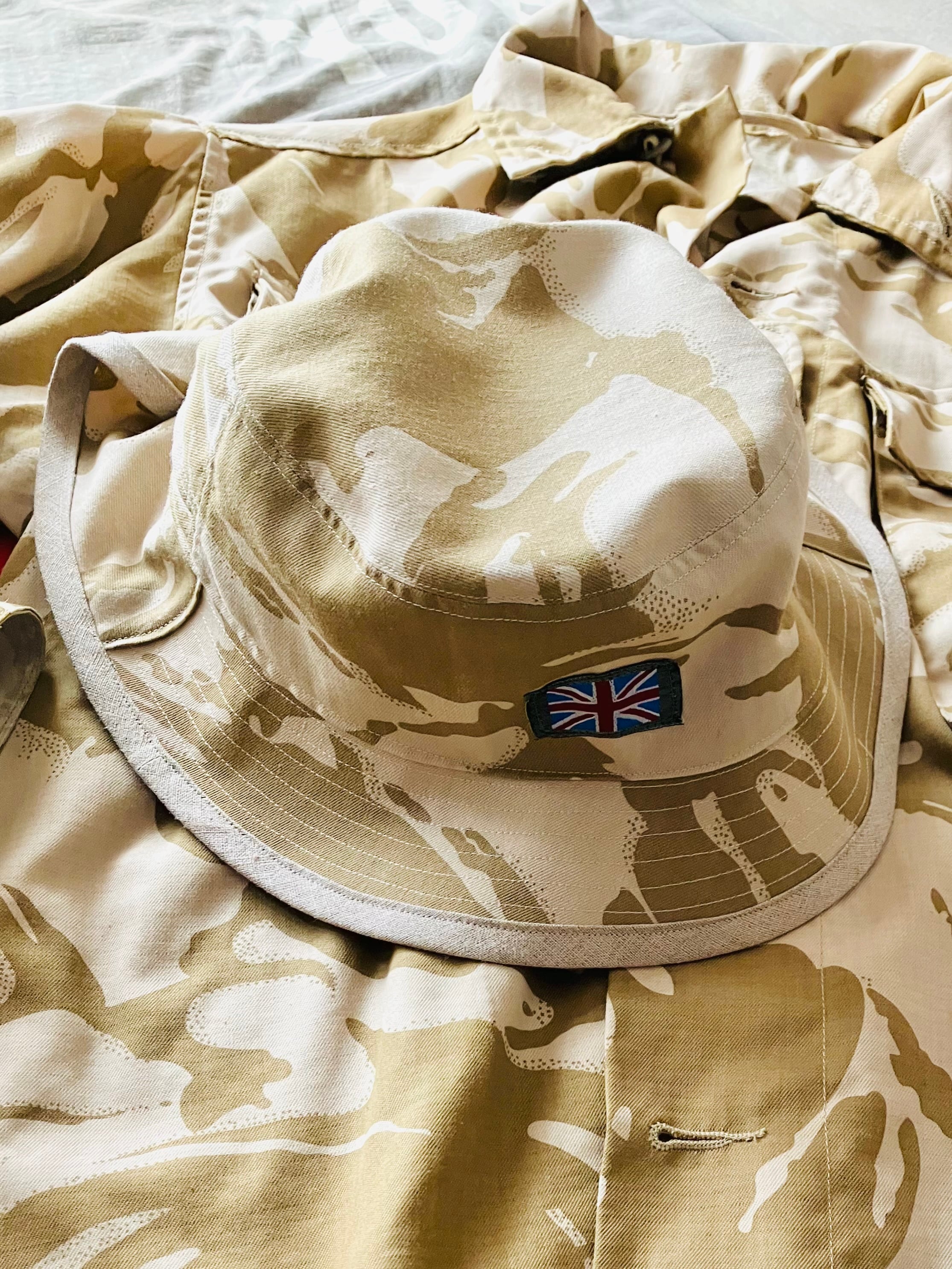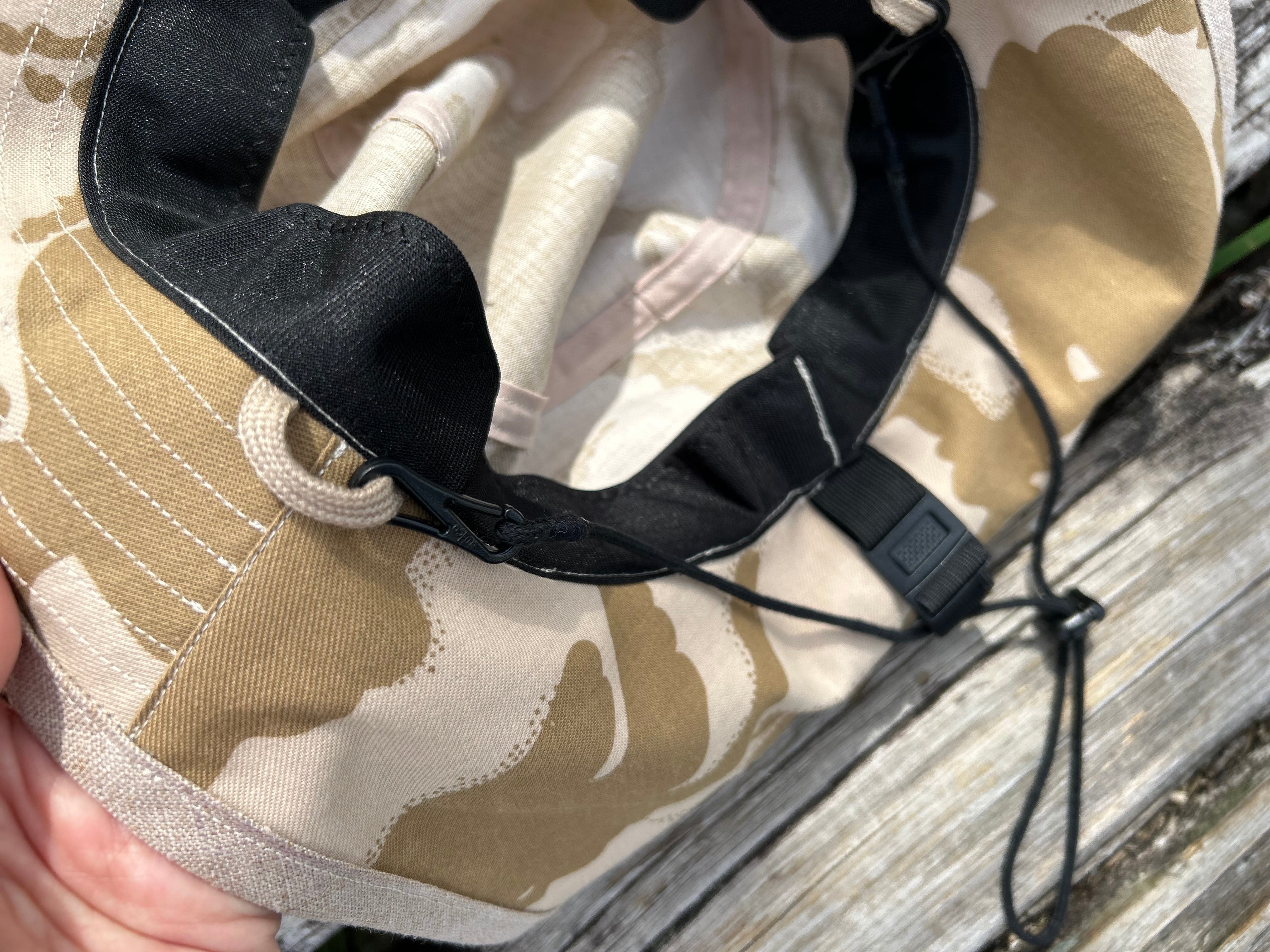 実物 USED イギリス軍 TROPICAL COMBAT ジャケット (デザートDPMカモ)をリメイクしてサンシェードハットを作りました。