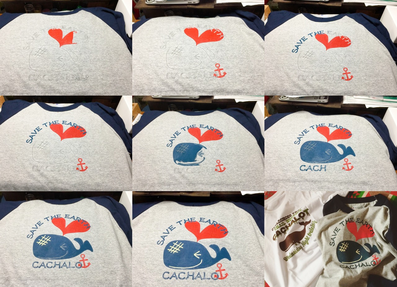 ヒラ社員気まぐれ手描き7分袖Tシャツ 〜CACHALOT 〜