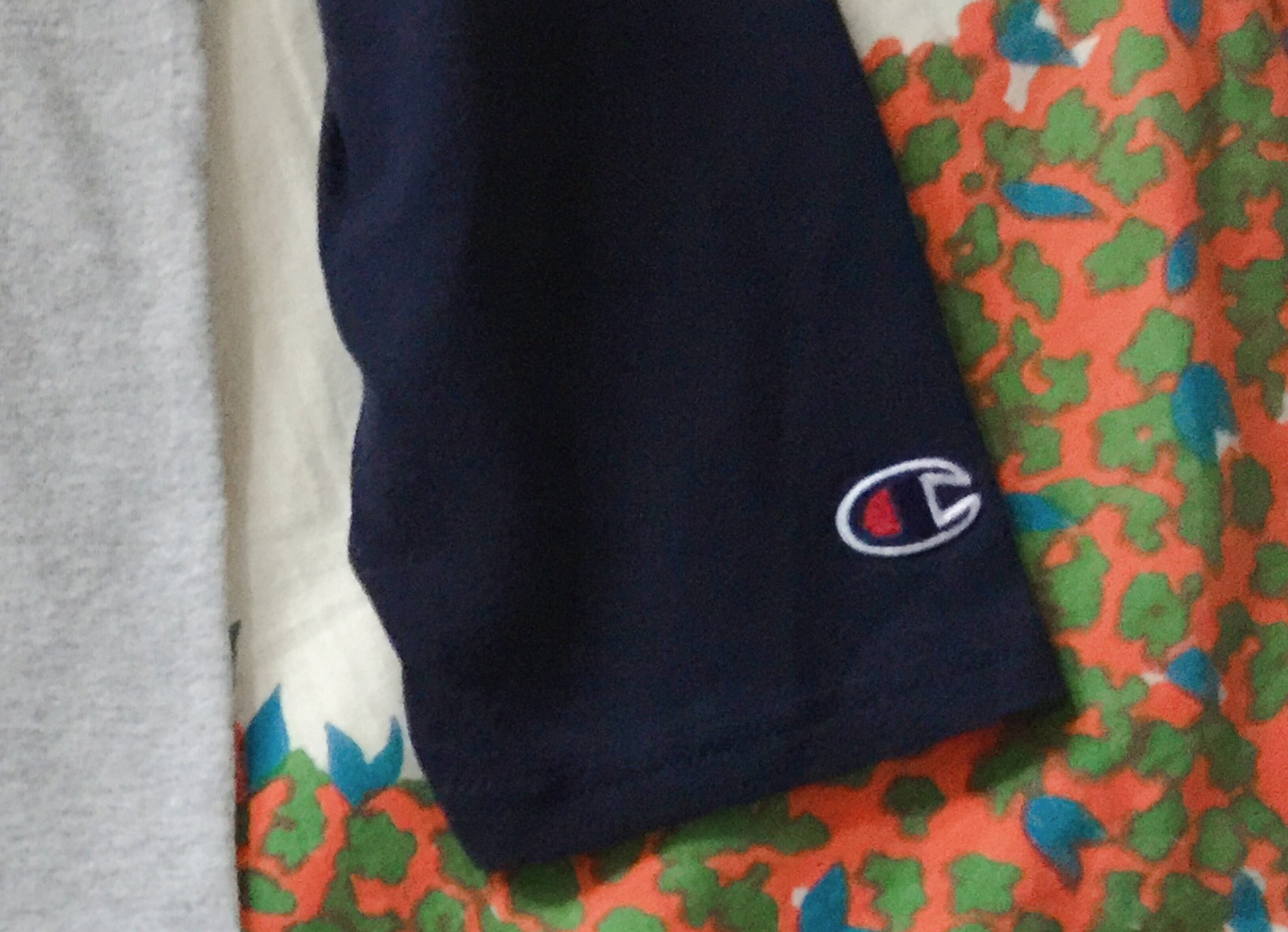 チャンピオンの海外モデル左下の裾部分にサイズとブランドパッチを施したシンプルな5.2オンスのコットン ラグラン7分袖Tシャツに手描きで