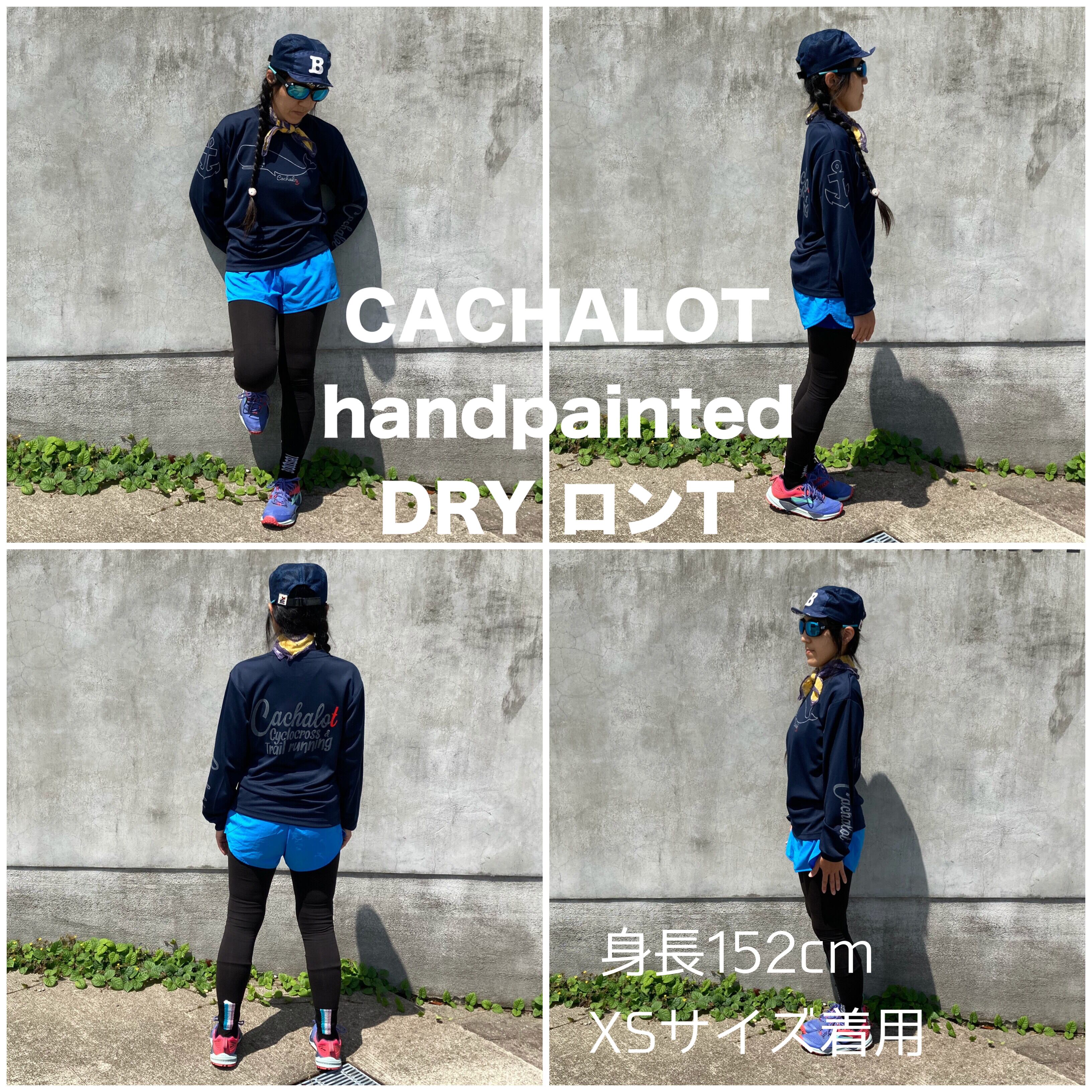 CACHALOT 手描きドライロングTシャツ ネイビー